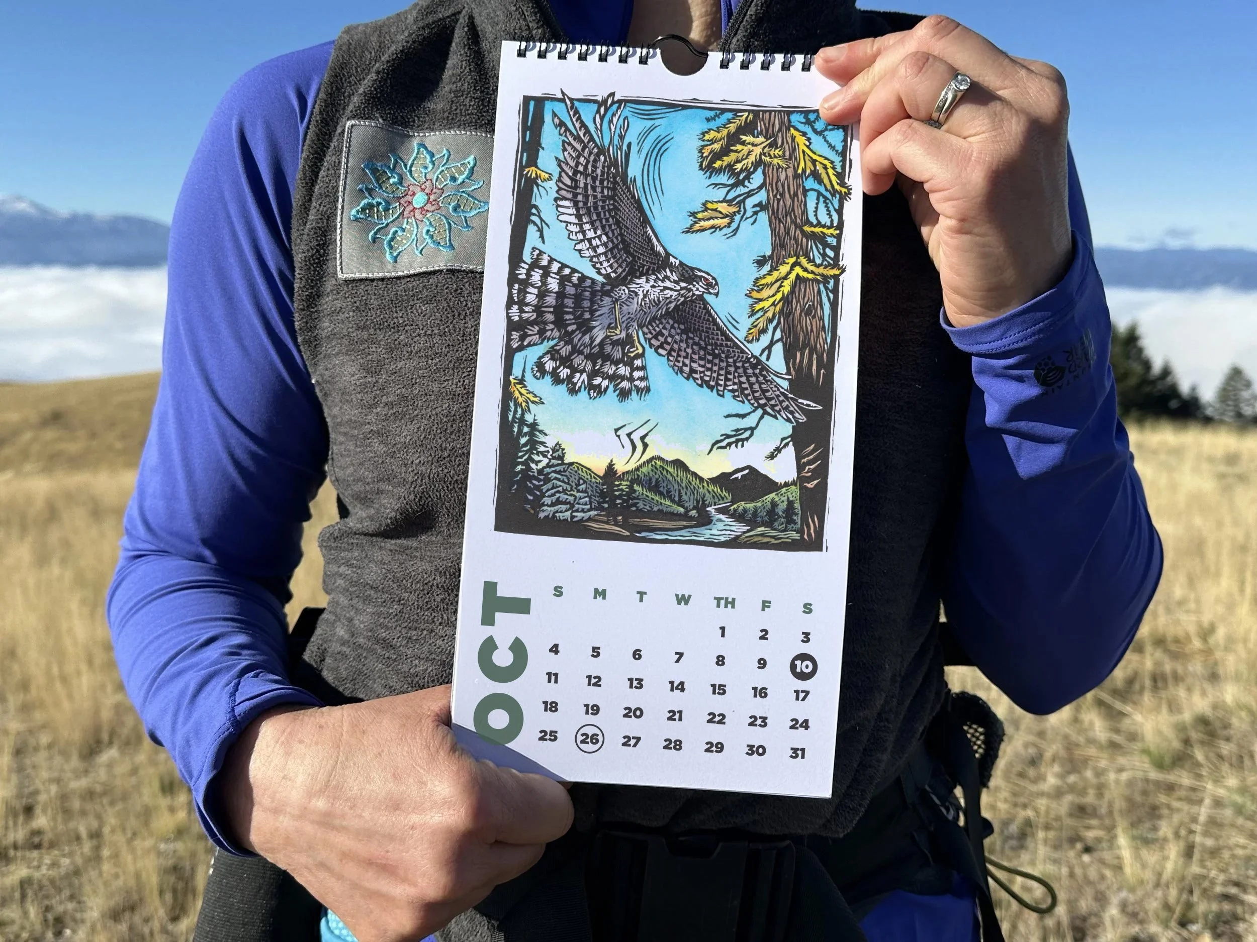 I design and carve each block by hand. Each woodcut is printed directly from the block using my 1984 Takach etching press in Missoula, Montana. Each print is individually painted, making each one a singular piece of art.